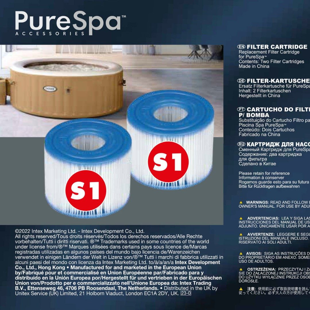Intex Spa S1 Replacement Filter Cartridges 2 Pack 29001