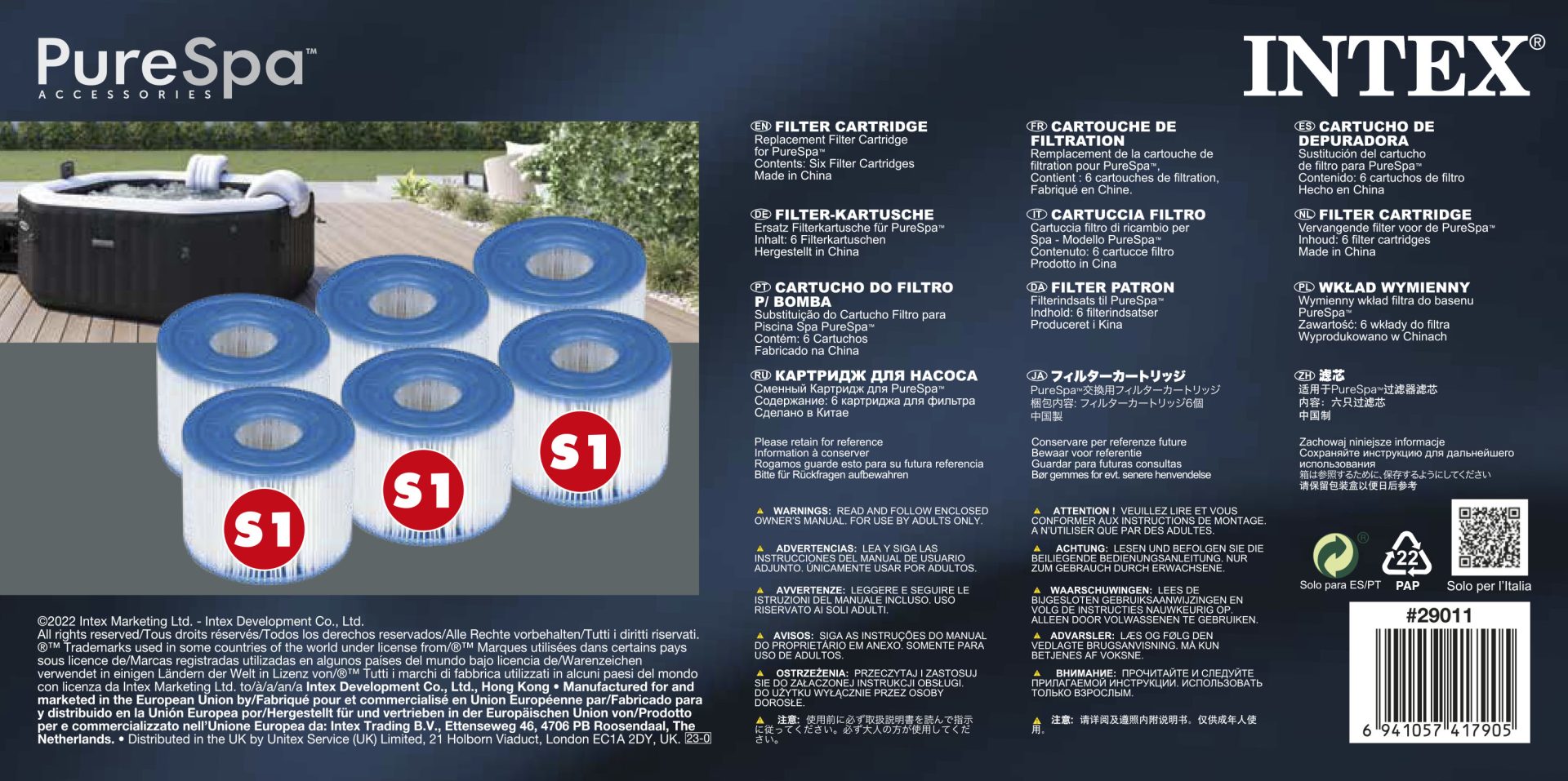 Intex Spa S1 Replacement Filter Cartridges 6 Pack 29011