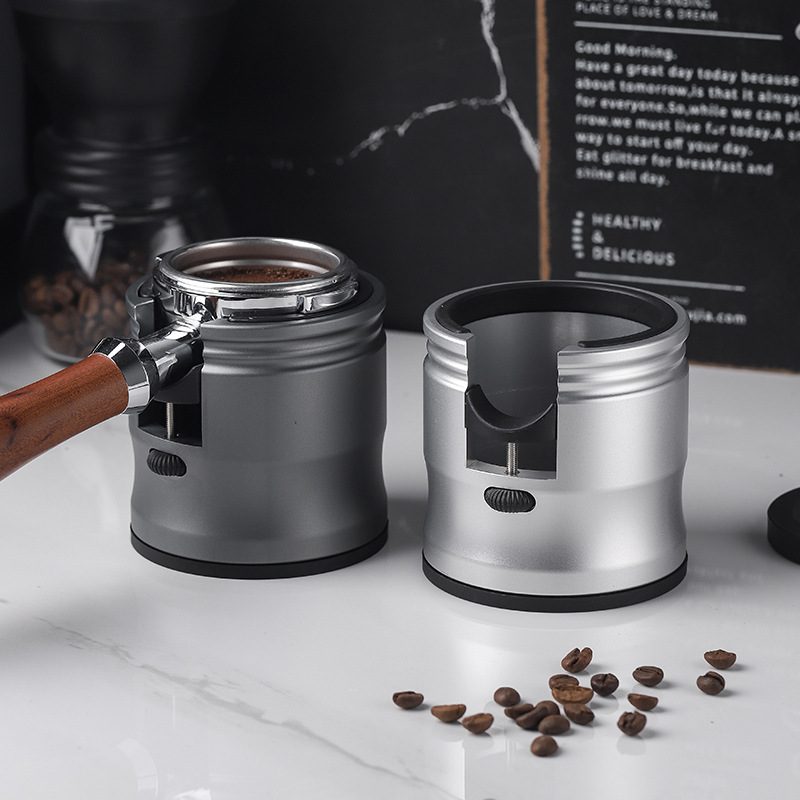 Silver Round Professional Aluminum Espresso Tamping Station – Adjustable Portafilter Holder Stand