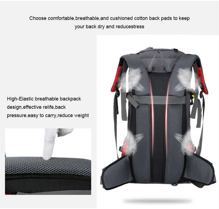 Red 60L Waterproof Hiking Backpack with Multi-Pocket Design for Outdoor Adventures