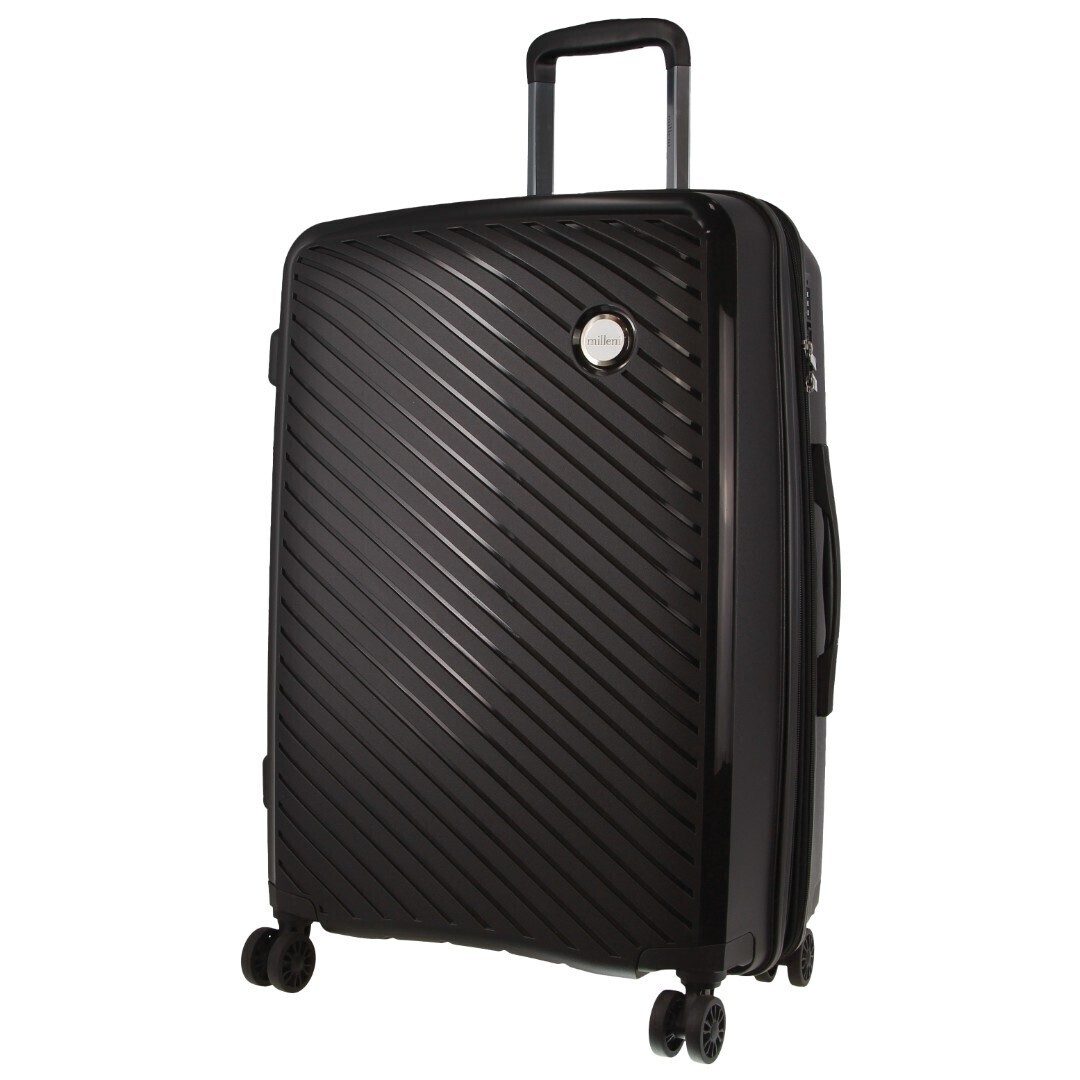 Pierre Cardin Inspired Milleni Checked Luggage Bag Travel Carry On Suitcase 65cm (82.5L) – Black
